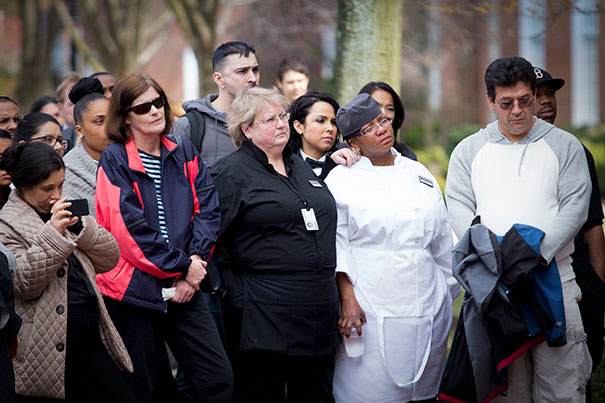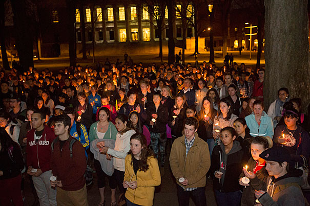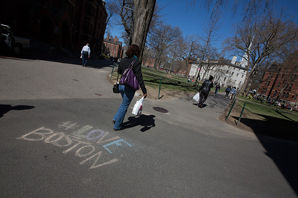 In the wake of tragedy, people gather to support each other, and to give thanks for family, friends, and community. After the Boston Marathon bombings and the area shutdown during the search for suspects, the Harvard community has been doing just that.
