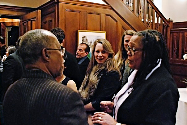 Harvard College Dean Evelynn M. Hammonds hosted a fireside chat at her home with Professor Henry Louis Gates and about 25 student participants who had been selected through a lottery system. The chat was part of a series of events designed to foster interaction between undergraduates and faculty outside the classroom.