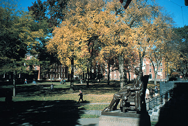 The trees of Harvard Yard are in the midst of managed change as the once-ubiquitous elms continue their decades-long decline. Mixed species, dominated by American trees, replace them.