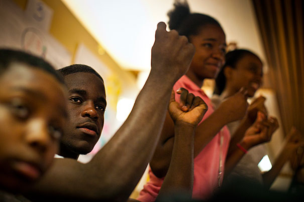 Thirty high school students from the Boston area gathered for the Crimson Summer Academy’s annual poetry slam. The young scholars spend three consecutive summers on the Harvard campus, amid classes, projects, field trips, and cultural activities to achieve their dream: success at college.
