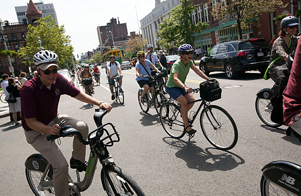 The popular Hubway regional bike-share program, up and running in Boston, is expanding into the nearby communities of Cambridge, Somerville, and Brookline, with Harvard playing a key role.