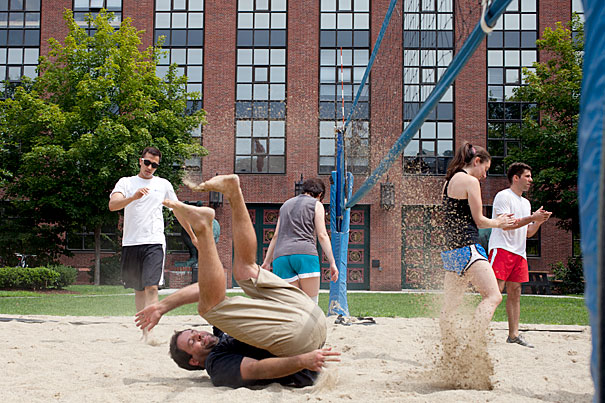 The annual Rhino Cup volleyball league stokes the competitive fires of Harvard’s biological community, drawing researchers out of the lab and onto the sandy volleyball court in the courtyard of the Biological Laboratories.