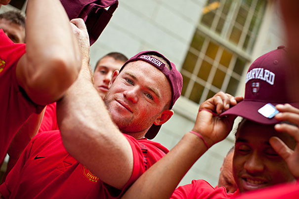 English soccer champions Manchester United made a brief stop at Harvard University as part of their U.S. pre-season tour, during which they’ll face several Major League Soccer teams including the Massachusetts-based New England Revolution. Sir Alex Ferguson led the star-studded squad through Harvard Yard, stopping at the statue of John Harvard for a photograph. Wayne Rooney, Ryan Giggs, Park Ji-Sung and Rio Ferdinand were among the crowd.