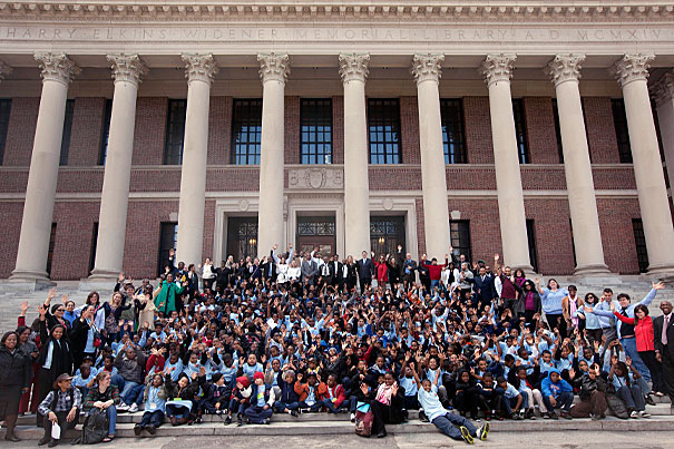 More than 300 kindergarten and fourth-grade African-American boys visited Harvard for the launch of Impact 300, a multifaceted Boston Public Schools program aimed at closing the achievement gap and helping to prepare the boys for college. Harvard partnered with the Boston schools in the program.