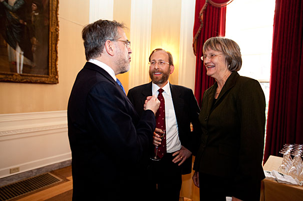 At a welcoming reception, Harvard President Drew Faust relayed the praise she received for incoming Provost Alan M. Garber ’76 throughout her search for a replacement for Steven E. Hyman.