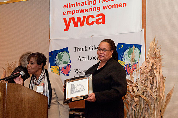 Harvard College Dean Evelynn Hammonds and Swanee Hunt, Eleanor Roosevelt Lecturer in Public Policy at Harvard Kennedy School (HKS), received the Outstanding Women Award from the YWCA Cambridge on Oct. 29.