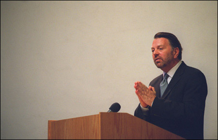 Wearing a midnight blue suit and gray tie, Castañeda spoke of the three “huge” changes that influenced Mexican thinking on foreign relations during the first years of the Fox administration. While Mexico had never played a pivotal role in the Cold War, Castañeda asserted that the demise of the Soviet bloc had necessitated a change in the traditional foreign policy for a country that had “on the one hand, been close to the United States for geographical, economic, and commercial reasons but also, for obvious reasons, had tried to reach out to other countries in the world.”