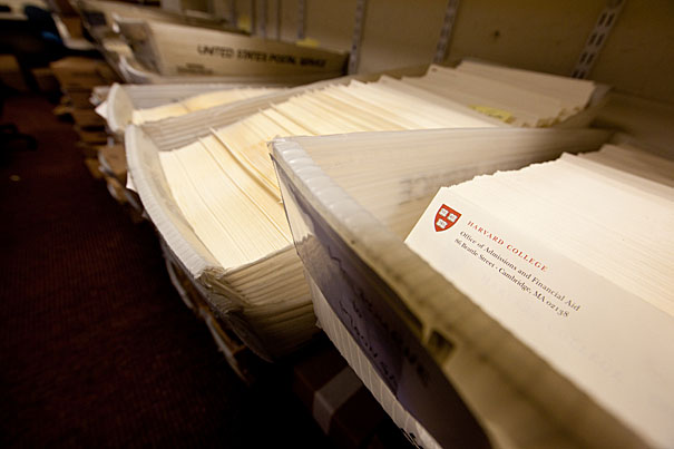(Cambridge, MA.– Wednesday, March 31, 2010)– Admissions employees send 2,110 admission packets and rejection letters (pictured) to high school seniors. Staff Photo Rose Lincoln/Harvard News Office