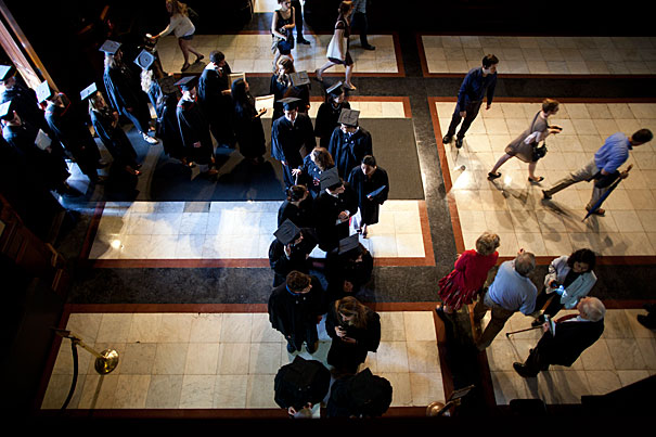 Harvard’s first official Commencement act of 2011 unfolded outside Harvard Hall today (May 24) when a select group of seniors in black caps and gowns gathered for a fife-and-drum procession to Sanders Theatre for the annual Phi Beta Kappa ceremony.
