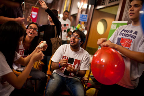 The Dean of Students Office at Harvard Law School (HLS) made sure that history was a cheeky part of the 375th celebration for its future lawyers. A controlled mayhem reigned on the second floor of the School’s Caspersen Student Center, as the expansive space turned into a mock British House of Lords.