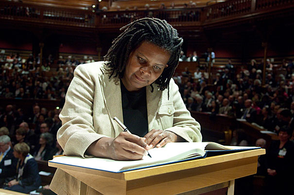 Among the inductees was Annette Gordon-Reed, pictured signing the book. “Induction recognizes extraordinary individual achievement and marks a commitment on the part of new members to provide fundamental, nonpartisan knowledge for addressing today’s complex challenges,” said the academy’s President Leslie C. Berlowitz.