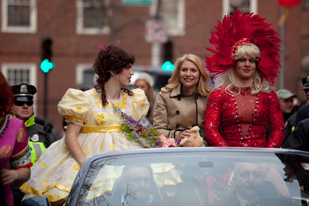 Members of Hasty Pudding Theatricals, dressed in drag, escort 2012 Woman of the Year Claire Danes in the traditional parade down Massachusetts Avenue.