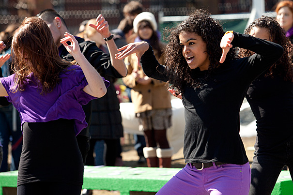 In recognition of Women’s Week, Nina Yancy ’13 (right) joined fellow dancers in front of the Science Center at Harvard. “Our goal is to bring new faces to Women’s Week, forge new connections, and inspire students to focus on prevailing gender issues,” said event organizer Angela Frankel ’14.