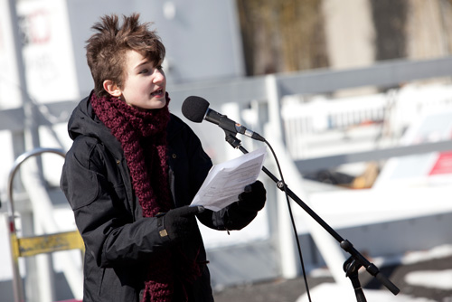 Kat Baus ’15 (pictured) reads an original poem during the opening celebration of Women’s Week.