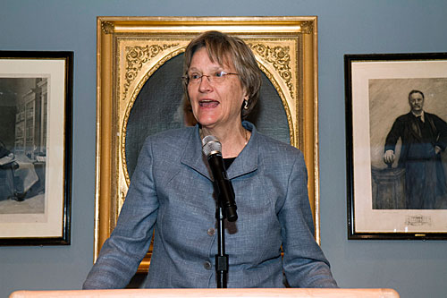 President Drew Faust joined in the festivities, and celebrated the staff members’ achievement.