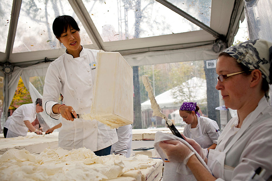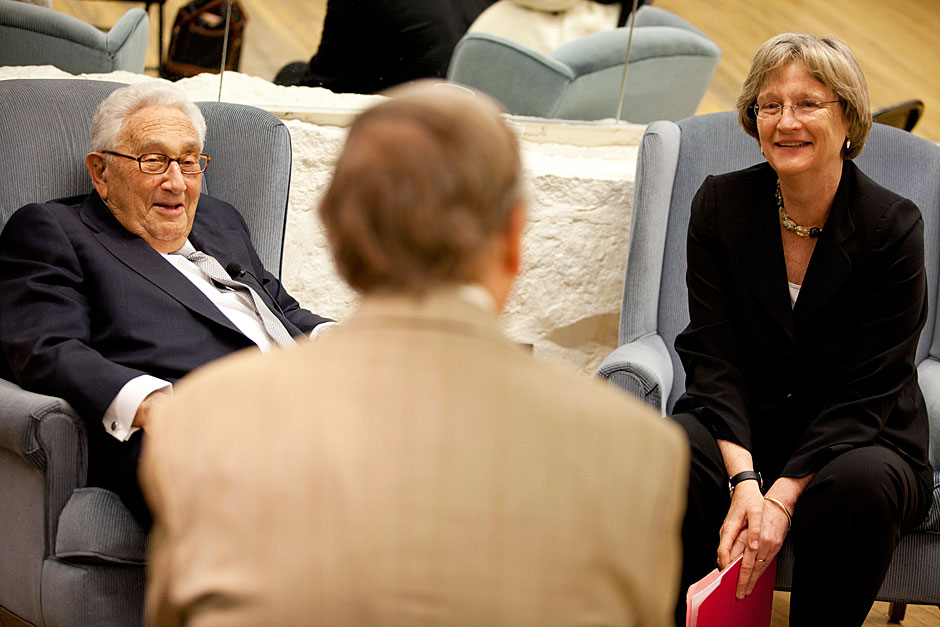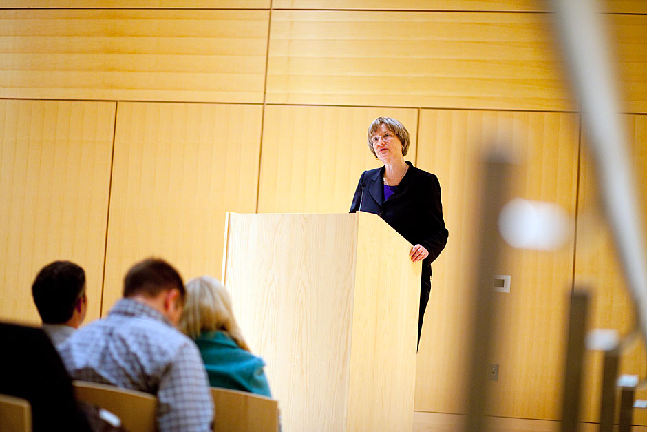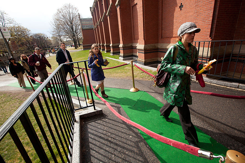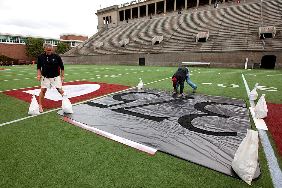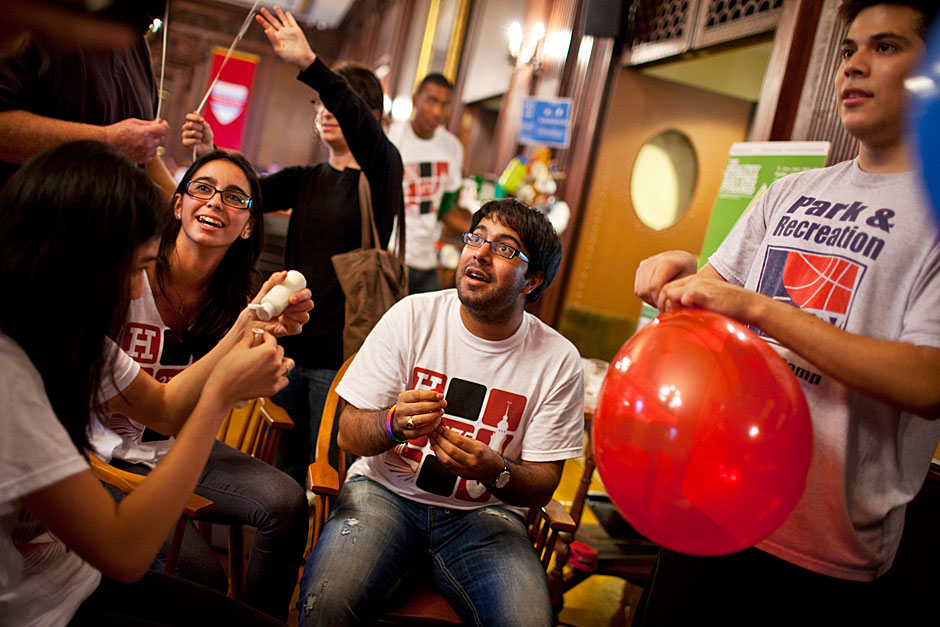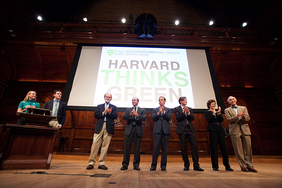 Banners hanging in Tercentenary Theatre proclaim Harvard’s 375th anniversary. Jon Chase/Harvard Staff Photographer Peter Girguis, John L. Loeb Associate Professor of the Natural Sciences, is an expert in deep sea microbes. An exhibit focusing on his work is displayed at Harvard Museum of Natural History. Rose Lincoln/Harvard Staff Photographer Workers paint 375 on the turf at Harvard Stadium to celebrate the University’s 375th anniversary. Rose Lincoln/Harvard Staff Photographer Chef Joanne Chang ’91 assembles the red velvet cake that will serve 4,000 people at Harvard’s 375th celebration in Tercentenary Theatre. Justin Ide/Harvard Staff Photographer Harvard students Stephanie Wang ’12 (from left), Kefhira Pintoi ’12, Raafi Alidina ’12, and Alan Montelongo ’12 blow up balloons in preparation for Harvard’s 375th anniversary celebration. Justin Ide/Harvard Staff Photographer The veritas shield and 375 logo decorate an ice sculpture inside one of the tents in Tercentenary Theatre as Harvard celebrates its 375th year. Justin Ide/Harvard Staff Photographer Jasdeep Randhawa ’13 (left) and Divya Dhar ’13 (center) are all smiles as they finally get served ice cream after a long wait during Harvard’s 375th anniversary celebration in Tercentenary Theatre. Jon Chase/Harvard Staff Photographer Lizabeth Cohen, Howard Mumford Jones Professor of American Studies and dean of the Radcliffe Institute for Advanced Study, holds a giant knife aloft after cutting the cake during the 375th anniversary celebration in Tercentenary Theatre. Jon Chase/Harvard Staff Photographer Cellist Yo-Yo Ma performs during the 375th celebration of Harvard University. Rose Lincoln/Harvard Staff Photographer Rena Fonseca, director of executive education at the Harvard Graduate School of Design, attends the opening of the Harvard Innovation Lab. Kris Snibbe/Harvard Staff Photographer Harvard Thinks Green: Six professors speak for 10 minutes each about the environment, from the vantage point of their respective fields, at Sanders Theatre. Speakers include Eric Chivian, Rebecca Henderson, Robert Kaplan, Richard Lazarus, James McCarthy, and Christoph Reinhart. Jon Chase/Harvard Staff Photographer Harvard University President Drew Faust presents “Telling War Stories: Reflections of a Civil War Historian” at the Cambridge Public Library as part of the John Harvard Book Celebration series. Rose Lincoln/Harvard Staff Photographer Snow falls on the John Harvard Statue while 375th signs decorate Harvard Yard. Kris Snibbe/Harvard Staff Photographer Harvard Graduate School of Design student Trude Renwick (pictured) skates on the ice installed in front of Harvard’s Science Center for students and members of the community to enjoy throughout the winter months. Stephanie Mitchell/Harvard Staff Photographer Harvard University President Drew Faust presents “Telling War Stories: Reflections of a Civil War Historian” at the Boston Public Library as part of the John Harvard Book Celebration series. Rose Lincoln/Harvard Staff Photographer Henry A. Kissinger, who served as national security adviser and secretary of state during the Nixon and Ford administrations, is a featured speaker in Sanders Theatre as part of the 375th anniversary celebration. Kissinger (from left), Graham Allison, and Drew Faust talk in the green room. Stephanie Mitchell/Harvard Staff Photographer Emma Beaumont-Smith (from center) and her mother, Natalie Beaumont-Smith (green jacket) of the Office of Work/Life Resources, enter the 2012 Green Carpet Awards inside Sanders Theatre. Kris Snibbe/Harvard Staff Photographer Historian Helen Lefkowitz Horowitz explores Harvard University’s relationship with women, which she describes as complicated. Her review begins with the University’s founding 375 years ago, when Harvard excluded women as students and teachers. Charles Rosenberg (from left), Drew Faust, and Horowitz listen during the introductory comments in Radcliffe Gymnasium. Stephanie Mitchell/Harvard Staff Photographer Students perform in Agassiz Theatre during a dress rehearsal for the Poetry Project, led by Jorie Graham, to be performed during the Arts First weekend at Harvard University. The students collectively recite a verse by e.e. cummings. Stephanie Mitchell/Harvard Staff Photographer Miguel Espejo, from Harvard Custodial Services, uses rainwater to wash Harvard Shuttles decorated with the 375th logo. Kris Snibbe/Harvard Staff Photographer