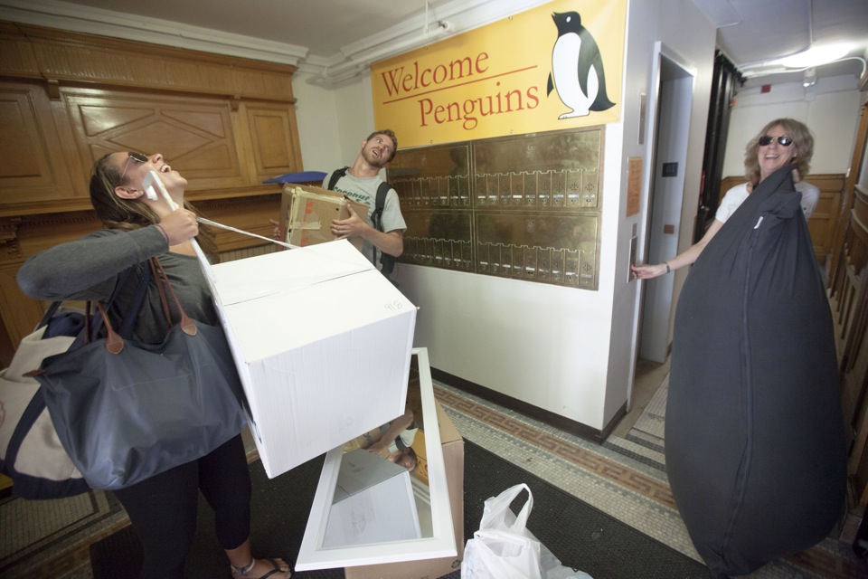With her head tilted back in laughter mimicking the penguin mascot of Quincy House, Emma Lipshultz ’15 and her family members found humor in hauling boxes, bags, and one giant beanbag into Lipshultz’s newfound home: Ridgley Hall.