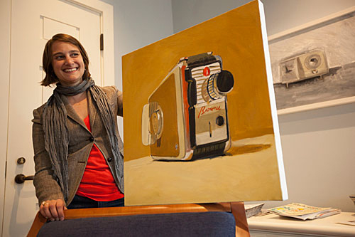 “These were still lifes of these dormant objects, and I realized I could make it a much bigger, broader thing, so I just kind of went for it.” A local weekend flea market became her regular haunt. There she scoured the stalls for her new “subjects,” like a 1942 Kodak Baby Brownie Special camera, and a baby blue Smith Corona typewriter from 1960.
