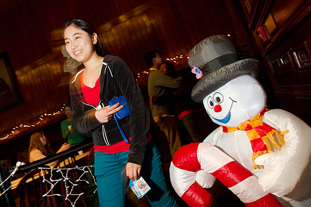 Joanna Wang ’16 is in good spirits as she walks into Annenberg Hall past Frosty the Snowman. Wang joined other freshmen for Winter Fest, a low-key event planned by the First-Year Social Committee.