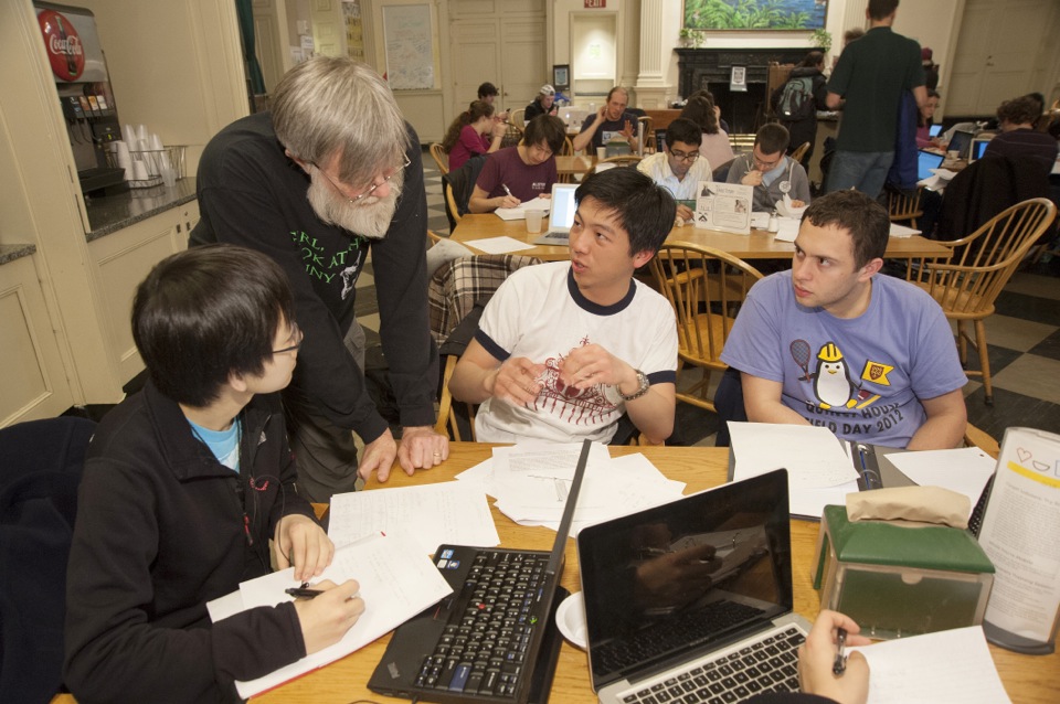 Soon, professors started sending their teaching fellows to Physics Nights, and even came themselves. The advent of Brain Break, during which students study late with food near at hand, reinforced the practice. Now, Physics Night is an institution that fills the dining hall with laptops and animated dialogue about physics — except, of course, when the talk is on the court at the MAC, where Leverett basketball players talk of “give-and-go” or “cutting to the basket” as they take a study break.