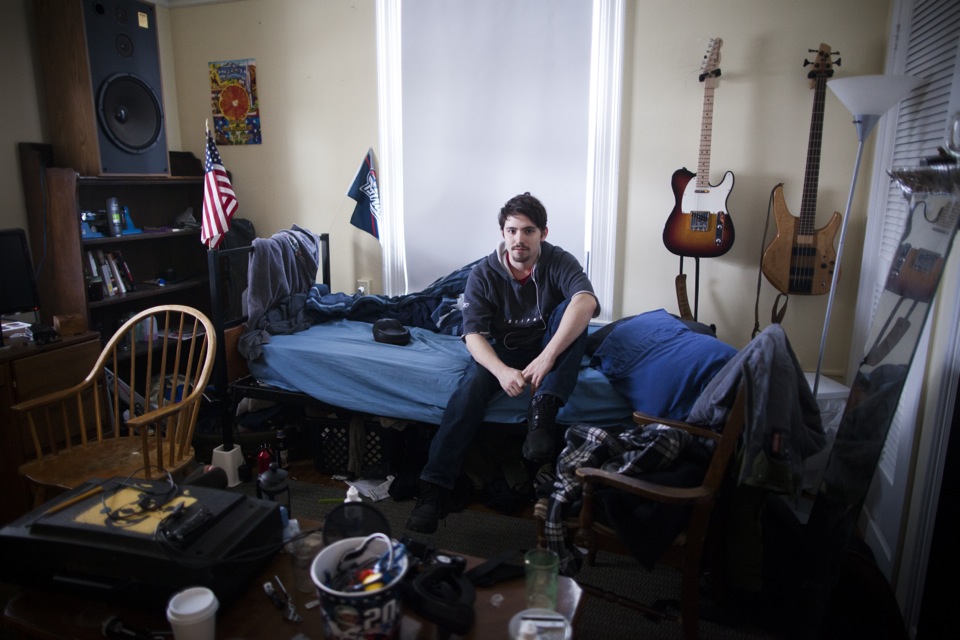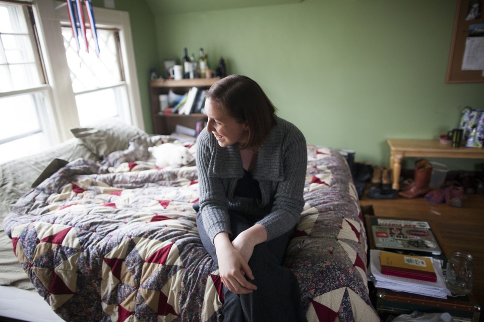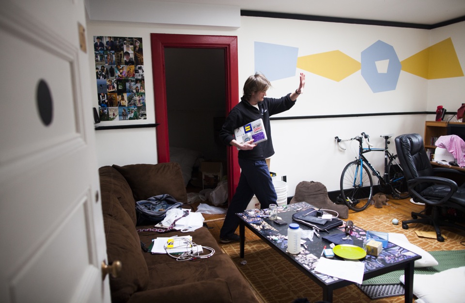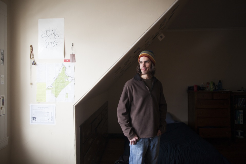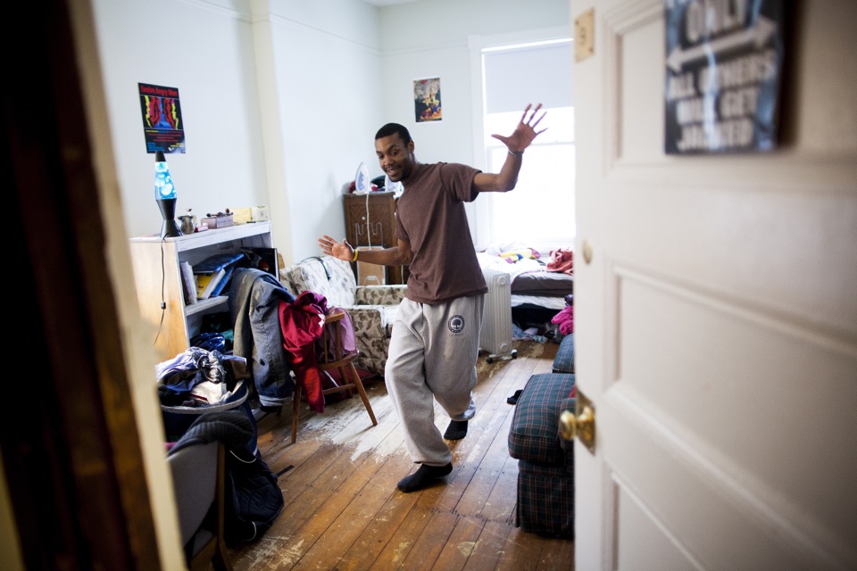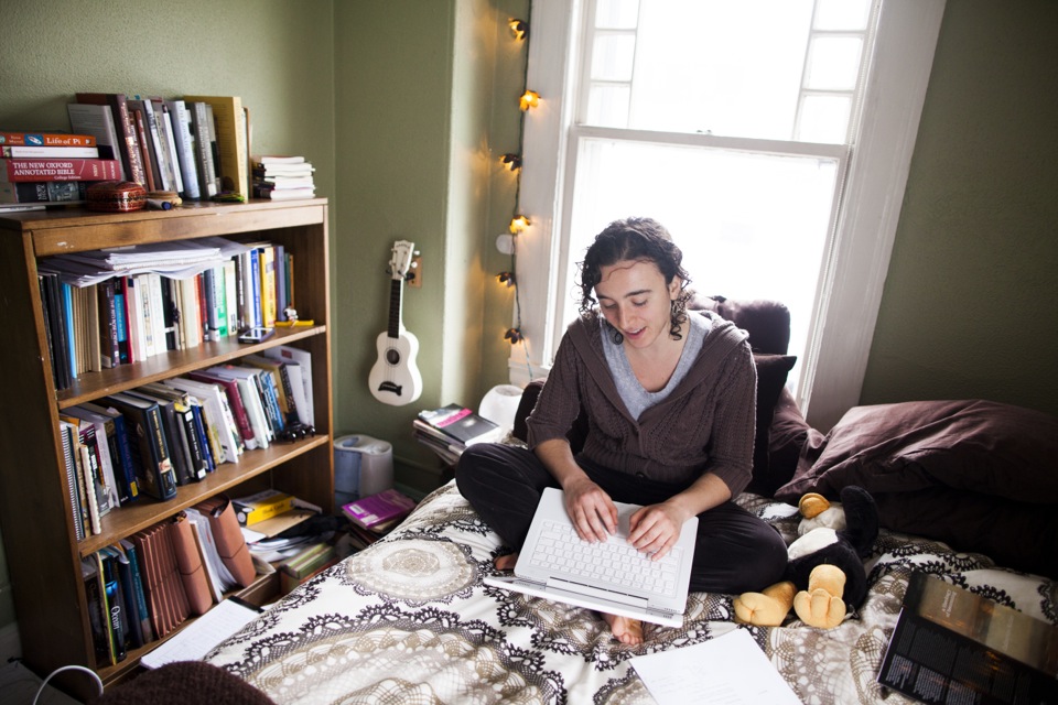 Charlotte Lieberman ’13, an English concentrator, is a native of New York City. Her room is decorated with books, posters, and album covers — a “strange mix of things that are sentimental and things that are kind of cheeky.” Charlotte is seated at her desk, where she writes a lot of poetry before she goes to sleep. Linguistics concentrator Parker Crane ’13 calls Cambridge his hometown. He enjoys the indirect sunshine that bounces off the front porch and gives his room “nice atmospheric light without it being too harsh at any point of the day.” Zoe Tucker ’13 hails from Newton, Mass. The exceptionally large windows that get good southern light make her room distinctive. Plants, dried flowers, and elegant wall hangings lend a serene atmosphere. The visual and environmental studies concentrator keeps her room very tidy and invests a lot of energy beautifying her space. Zoe’s family dog, Charles, visits her regularly and makes a sweet companion in her home away from home. The co-op is the only Harvard residence that allows students to keep pets. Malik Knox ’13 loves having a lot of space in his room for friends to visit. With his busy schedule — the sociology concentrator from Baltimore dedicates a lot of time to theater and dance — he doesn’t have a lot of time to decorate. Malik’s favorite thing is the lava lamp he found in the basement of the co-op: “It’s my friend that I go to sleep with.” Speaking about the community at the co-op, Malik says, “I love the people here. Everyone is on the same page about being part of a community. We are all different in many ways. We all have each other’s back. I feel like I can be myself here.” John Aloian ’13, an organismic and evolutionary biology concentrator, calls New Canaan, Conn., his hometown. John favors the slanted ceiling in his room. The sound of rain hitting the roof above him makes him feel as if he is camping, in a tent, or high up in a canopy. Devi K. Lockwood ’14, a folklore and mythology concentrator, is originally from Ridgefield, Conn. Despite the occasional loud music from the kitchen below, Devi finds her space inviting, relaxing, warm, and cozy. One of Devi’s windows looks out onto a storefront rooftop. She says, “Whenever it rains, which is frequently around here, you get this puddle for a couple of days on top of the rooftop, and the puddle reflects the sky. I like to write lying on my stomach looking out of that window. The light is really beautiful and it makes me feel connected to water, even though I’m far away from it. As a rower, I’m obsessed with water.” Ben Whitney ’13 is a mathematics concentrator from Hingham, Mass. The speakers in the room are his favorite feature. He likes to play music that is spare, either in the instrumentation or the landscape that it evokes. The music of James Blake has been dominating these speakers of late. Bethany Potter ’13, an anthropology concentrator, is a native of Auburn, Maine. Her room on the third floor offers her quiet in the midst of an active house. There are a “million things” she likes about her room, but it is the grand windows she favors most. “I love that I can leave the windows open all night, even if it’s raining, because there is nothing better than that.” Bethany speaks about the beauty of the co-op: “It’s an intentional community, and I think that’s the linchpin that everything else hinges on. Everyone made a conscious choice to be here and so they are automatically invested. I feel more like a real human being than I did living in a dorm.”
