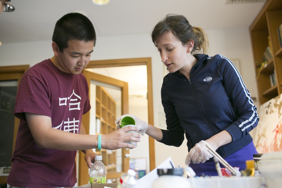 With the support of Harvard Hillel, Harvard Memorial Church, the Harvard Chaplains, and Combined Jewish Philanthropies in Boston, Gilon and a number of Harvard students were able to devote a week to painting the mural. Gilon helped students mix paint and showed them where to apply it to the mural whose outline she had stenciled ahead of time. Some students were artists; others just wanted the chance to spend time in the group. There was a relaxed atmosphere and lighthearted chatter among people meeting each other for the first time.