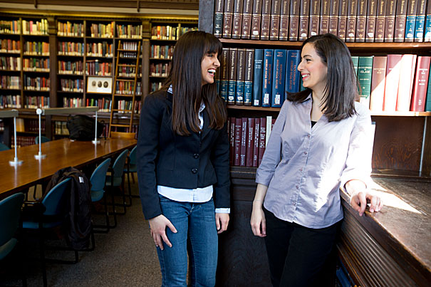 Lena Awwad ’13 (right) won the 2013 Harvard College Women’s Leadership Award for an op-ed she co-authored with Shatha I. Hussein ’14. The Harvard students focused on SAT exams being withheld from Palestinian students in the West Bank. Because of their efforts, “at least one of those students who was able to take the SATs will attend Harvard next year,” said Gina Helfrich, director of the Harvard College Women’s Center, which gives the award. The runner-up is Nadia Farjood ’13 (left), who will intern at the White House this summer.