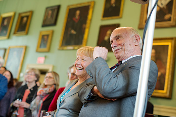In addition to his 38 years in continuing education, Shinagel’s career at Harvard has touched almost every aspect of University life. He was a House master for Quincy House from 1986 to 2001, was a nonresident tutor for Eliot House, and is a former president of the Faculty Club. “I didn’t even know we had presidents of the Faculty Club,” Smith quipped, prompting laughter from the crowd.