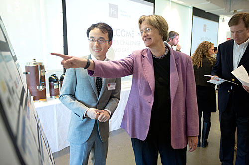 The idea behind One Harvard, Jones said, is to create “a place where Schools pursue their excellence by coming together across disciplines, in collaboration and support of students and faculty — we’re proud to be part of that. The i-lab and the President’s Challenge, which we celebrate here today, are just two examples of One Harvard at work.”