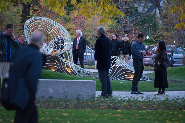 The artwork was revealed at a public event called Radcliffe Open Yard, which was an opportunity for the institute to share its people, programs, and collections. In addition to the public art installation in the Wallach Garden, other student submissions to the competition were on display in Fay House.