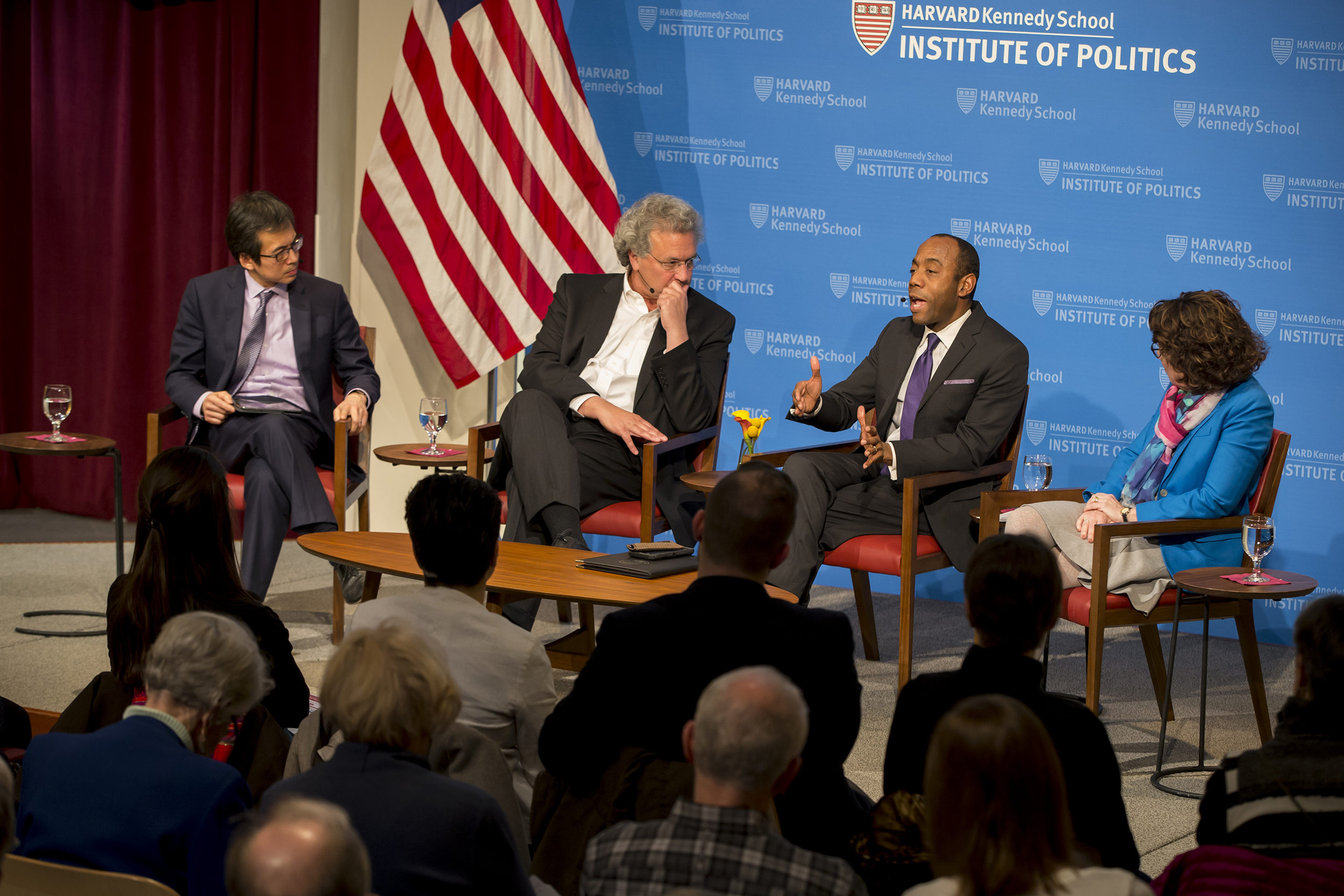 Archon Fung (from left), Richard Cohen, Cornell William Brooks, and Sarah Wald.