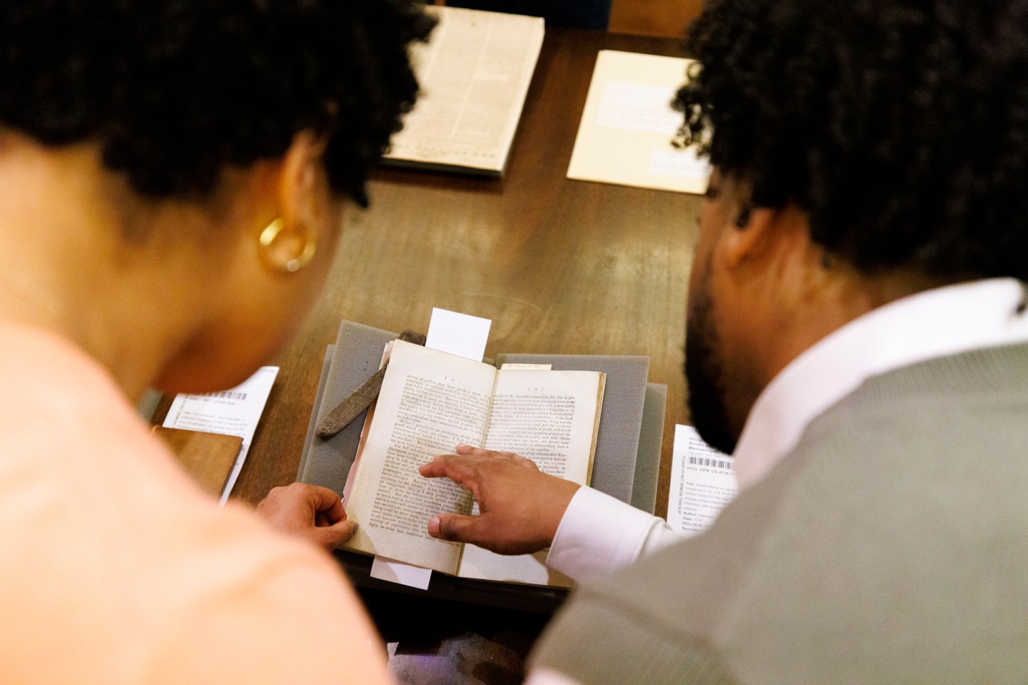 At Houghton Library, John Overholt, curator of the Donald and Mary Hyde Collection of Dr. Samuel Johnson and Early Books and Manuscripts, showed the cast an array of rare documents dating back to the Revolutionary War.