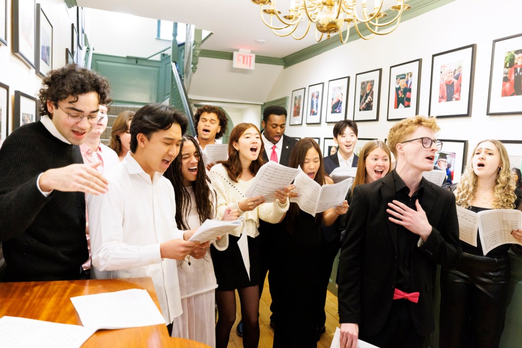 “I think for lot of us — at least for me at 14 — our lives were changed by ‘Hamilton,’” Opportunes soprano Gabby Medina ’26 told the cast as they hugged and posed for photos after the performance. “We don’t really get to sing a lot of musical theater like this, so this is really healing.”