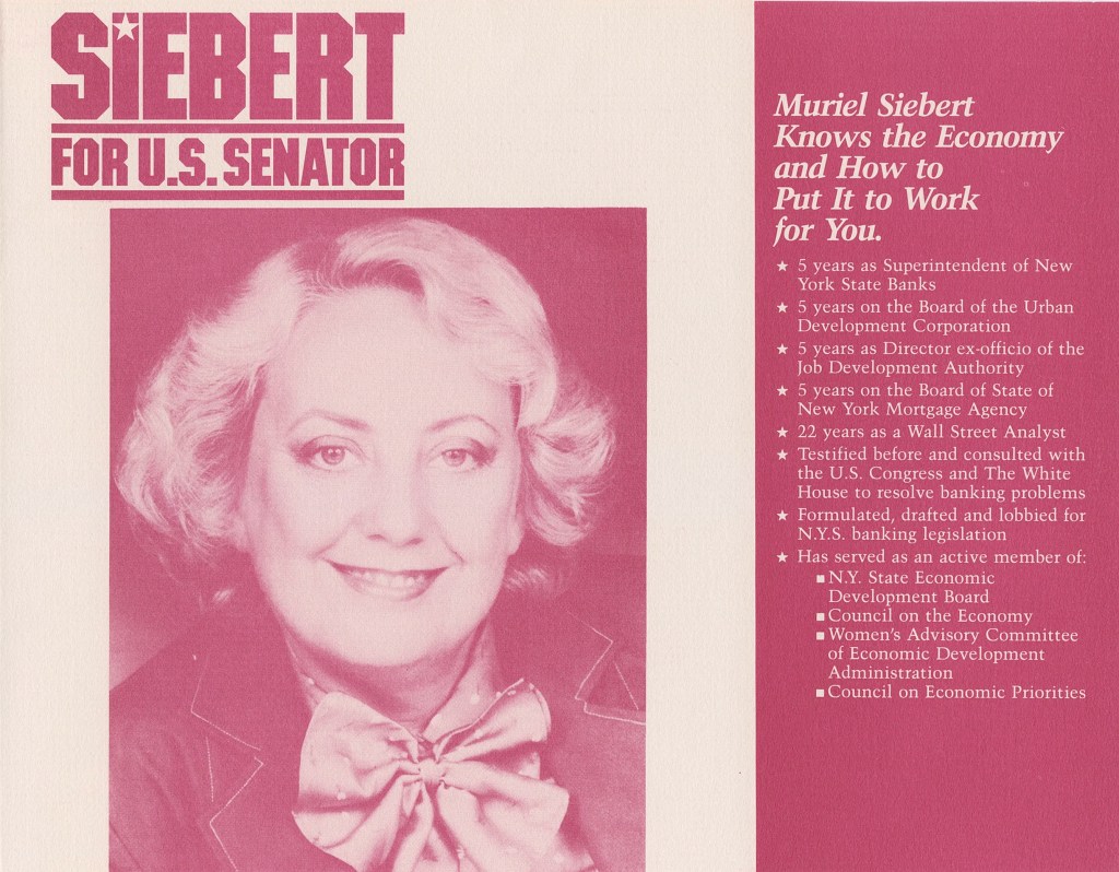 In 1977, Siebert was appointed New York State’s Superintendent of Banks, making her the first woman to hold the position. She oversaw about 500 banking institutions, $400 billion in assets, and $100 billion in trust accounts.