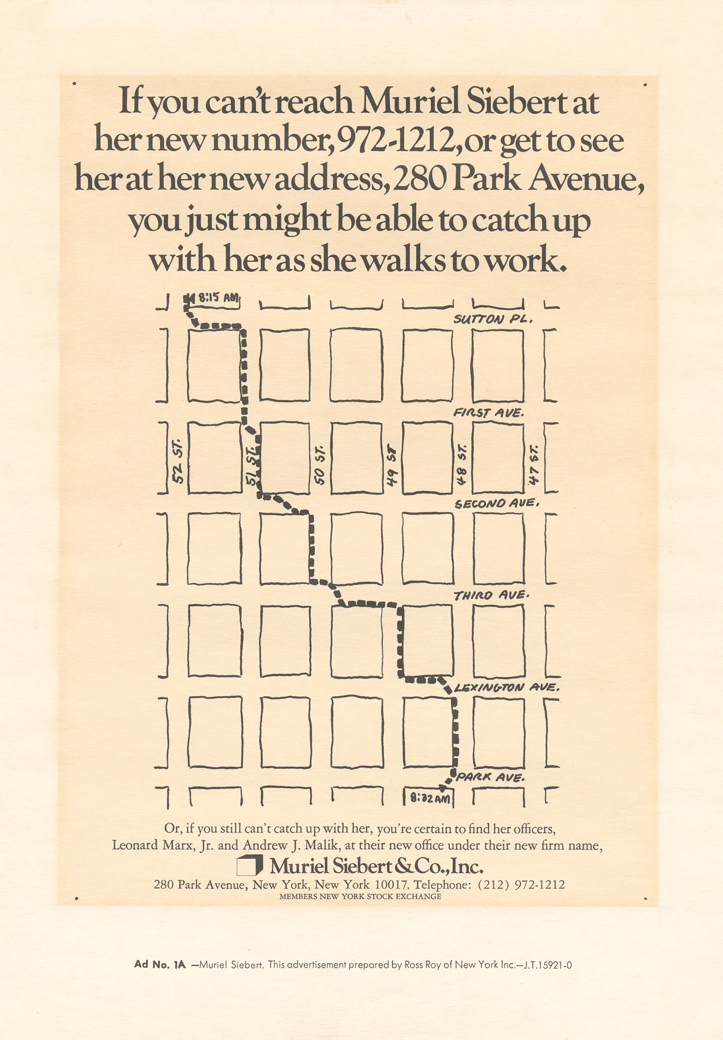 “If you can’t reach Muriel Siebert.” Advertisement, 1983.