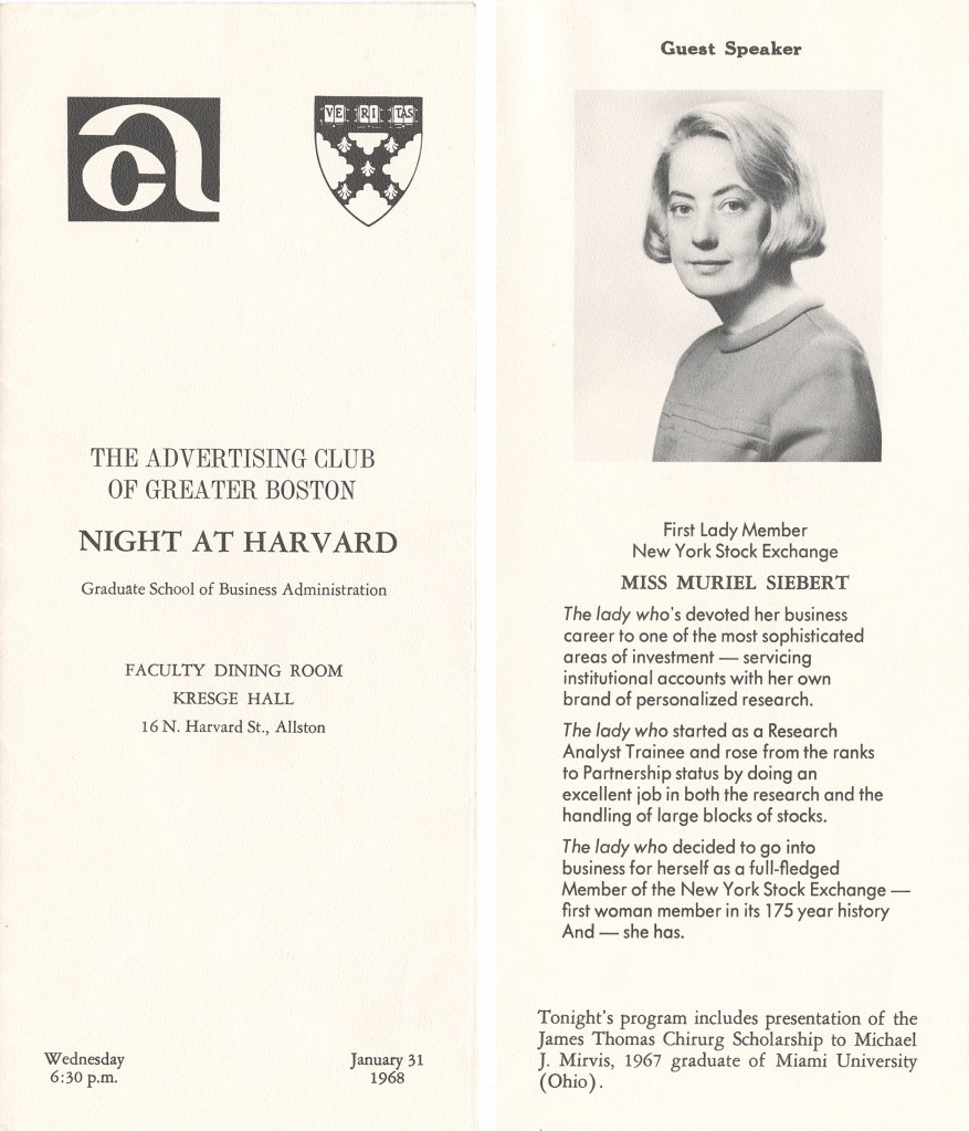 Siebert quickly earned a reputation as a trailblazer. She was invited to speak at Harvard Business School in 1968, shortly after she bought her seat on the exchange (HBS had first admitted women into its full MBA program five years earlier).