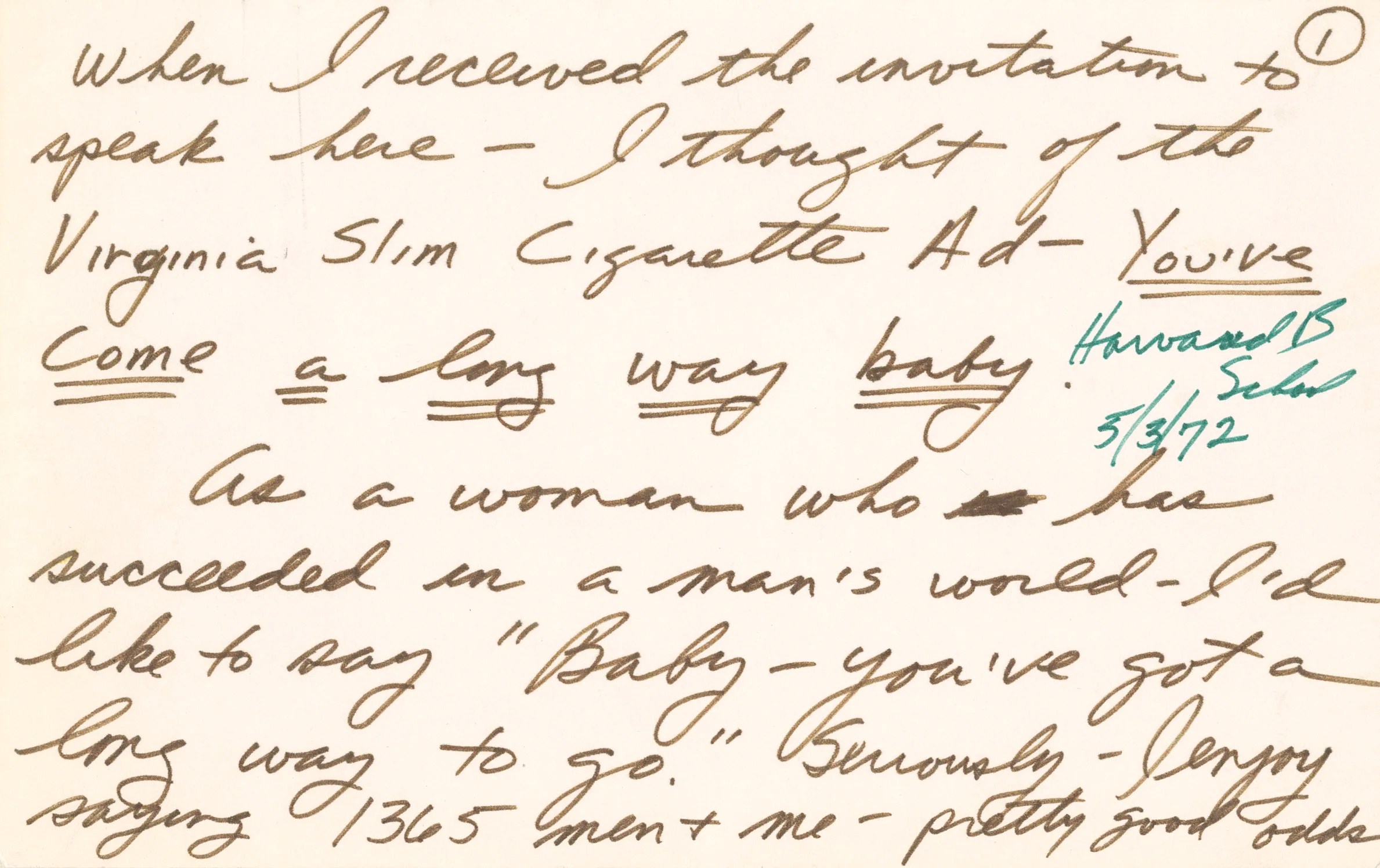 Notes for keynote speech by Siebert for “Women in Management Day Program,” HBS, May 3, 1972.