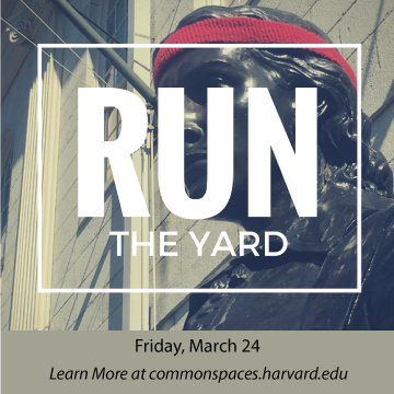 Grab your sneakers and register to join the Harvard Community for a University-wide fun run on Friday, March 24. This free, untimed 5K will do three loops around historic Harvard Yard and the northern Law School campus. Harvard students, faculty, and staff, along with their friends and families are welcome to participate. Registration, refreshments, and activities will be held on the Plaza.